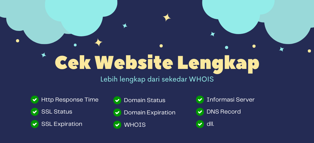 Cek status website terlengkap mulai dari domain sampai server, lebih dari sekedar WHOIS.